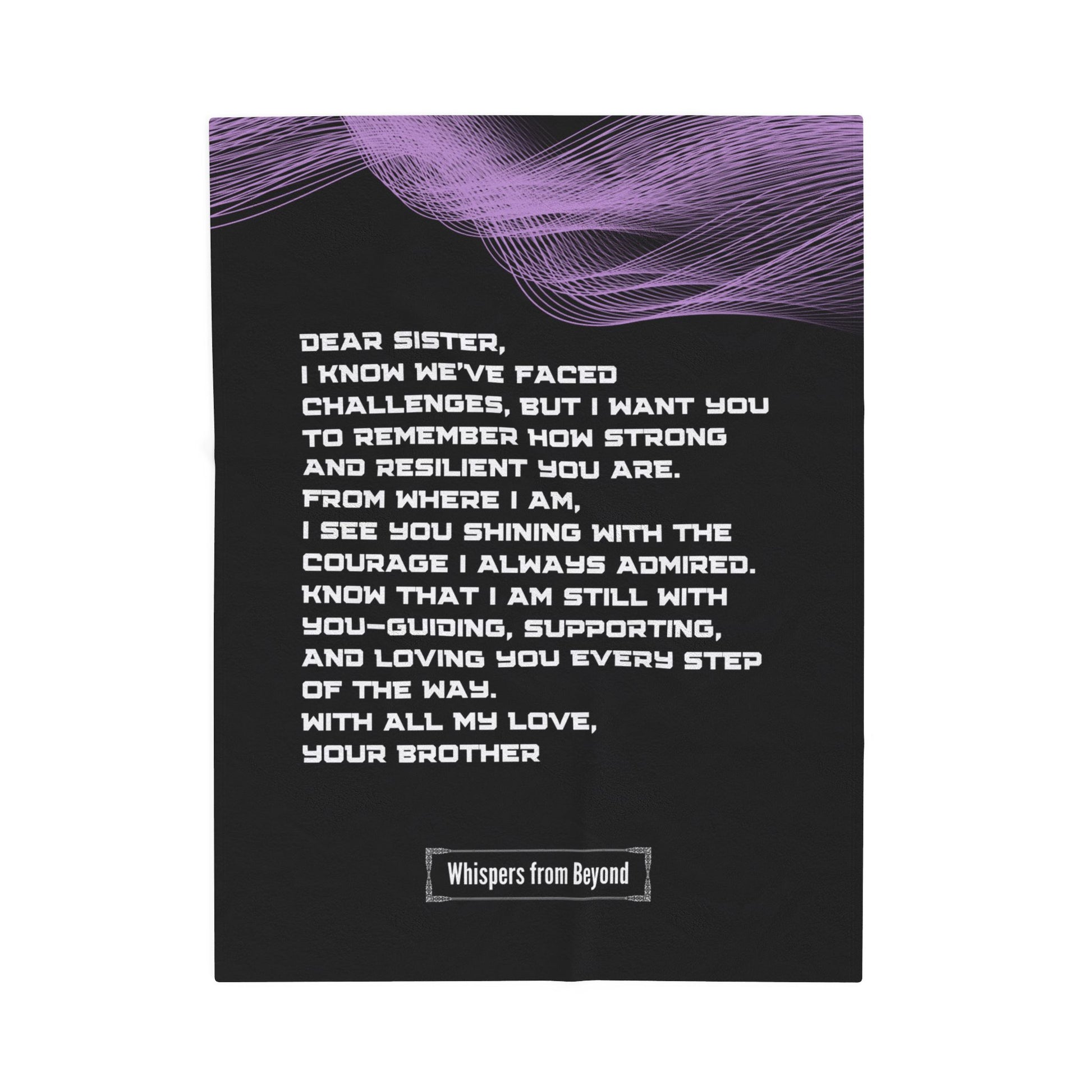The bond between siblings is unbreakable, even across the veil. This blanket carries a loving message from a brother in spirit to his sister, offering comfort and strength. It’s a reminder of the courage she carries, her warrior spirit, and the unending love and support he continues to provide from beyond.