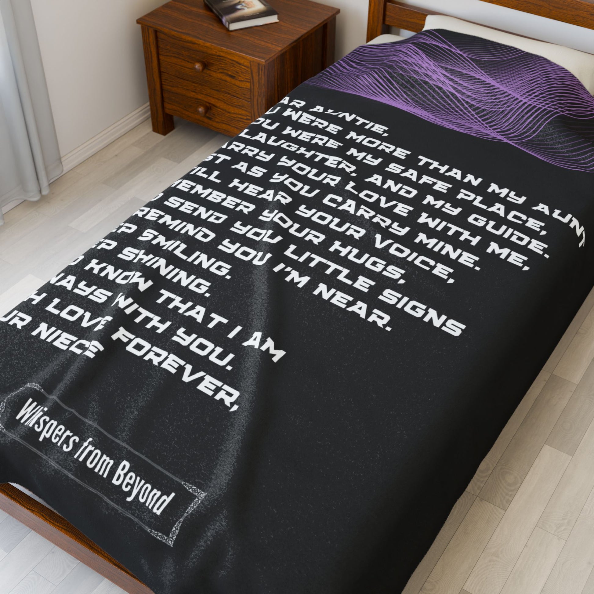 The love between a niece and her aunt is one of comfort, laughter, and endless support. This heartfelt blanket carries a touching message from a niece in spirit, reminding her aunt that she is always near, watching over her with love and warmth. A cherished keepsake that offers comfort, strength, and the beautiful reminder that love never fades.