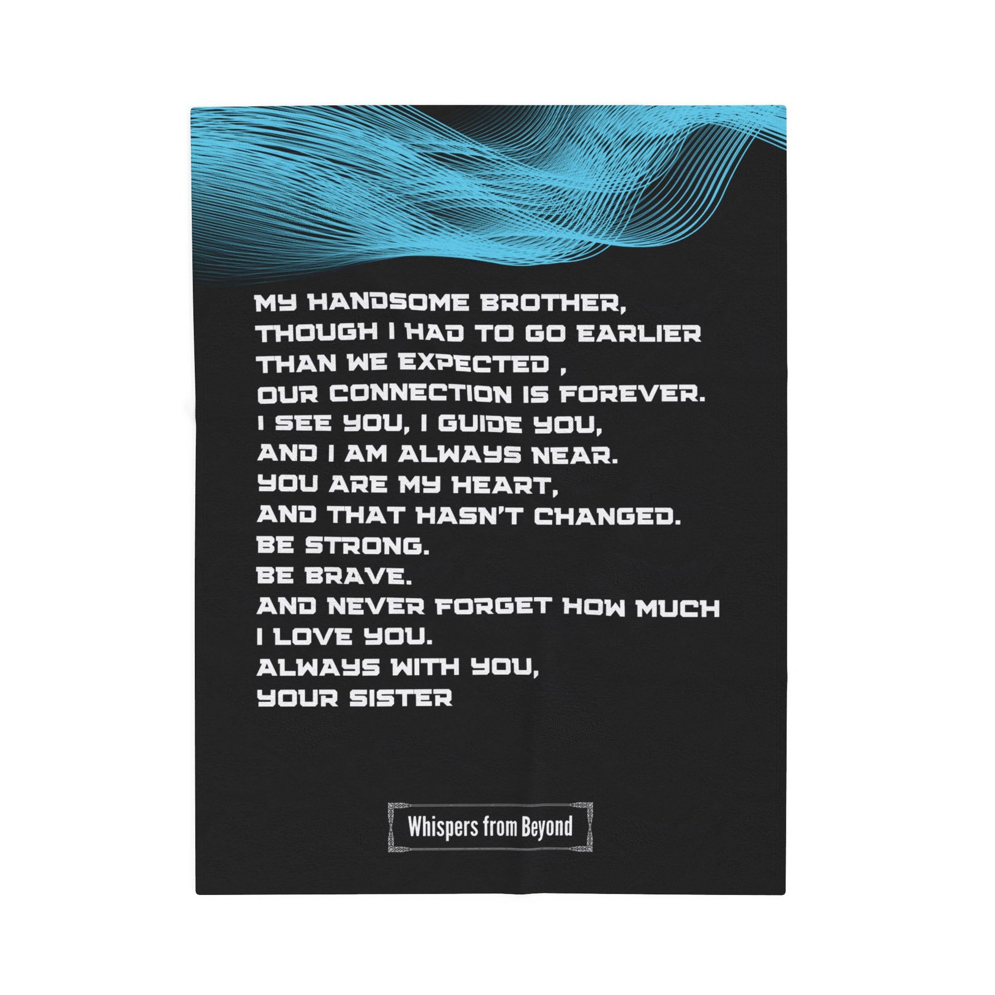 The love between siblings knows no boundaries. This blanket is a beautiful reminder that even though the time together was too short, the bond between a brother and sister is eternal. She is always with him, watching, guiding, and loving him, no matter the distance