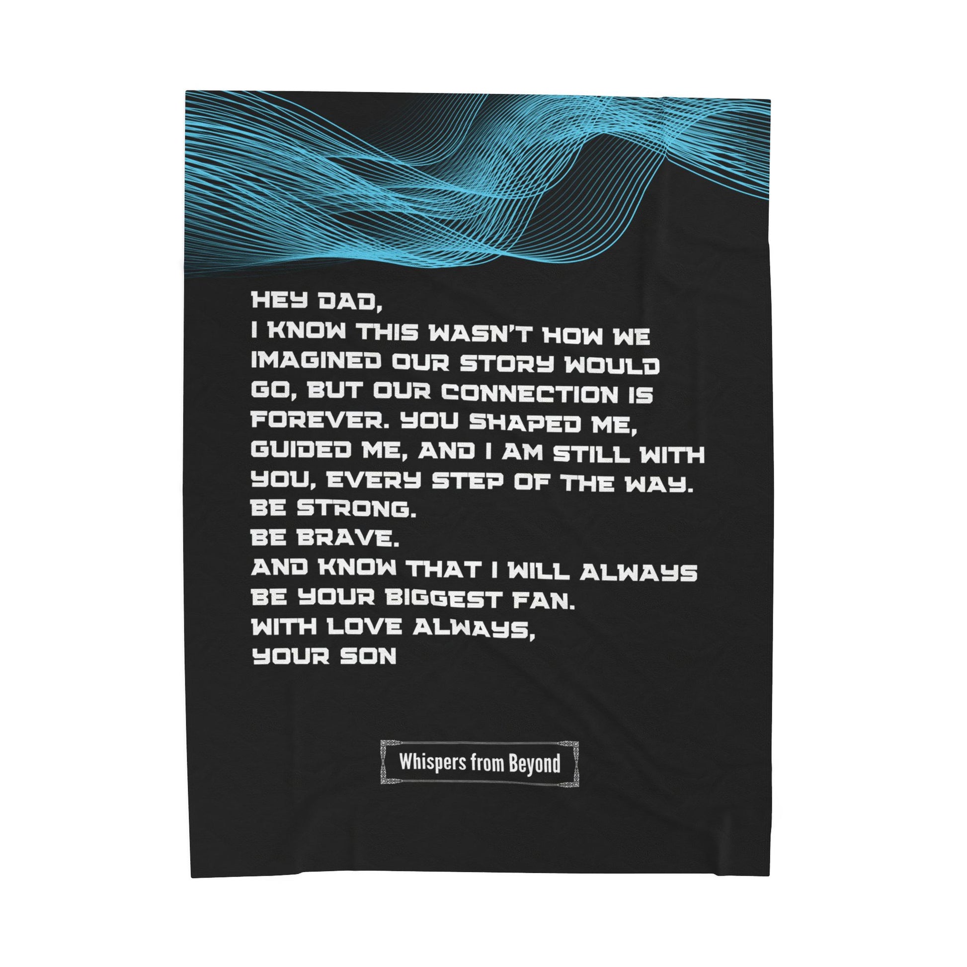The bond between a father and son is timeless and enduring. This comforting blanket carries a heartfelt message from a son in spirit, reminding his dad that their connection remains unbroken. A loving reminder that even from beyond, he continues to guide and support his father, always cheering him on.