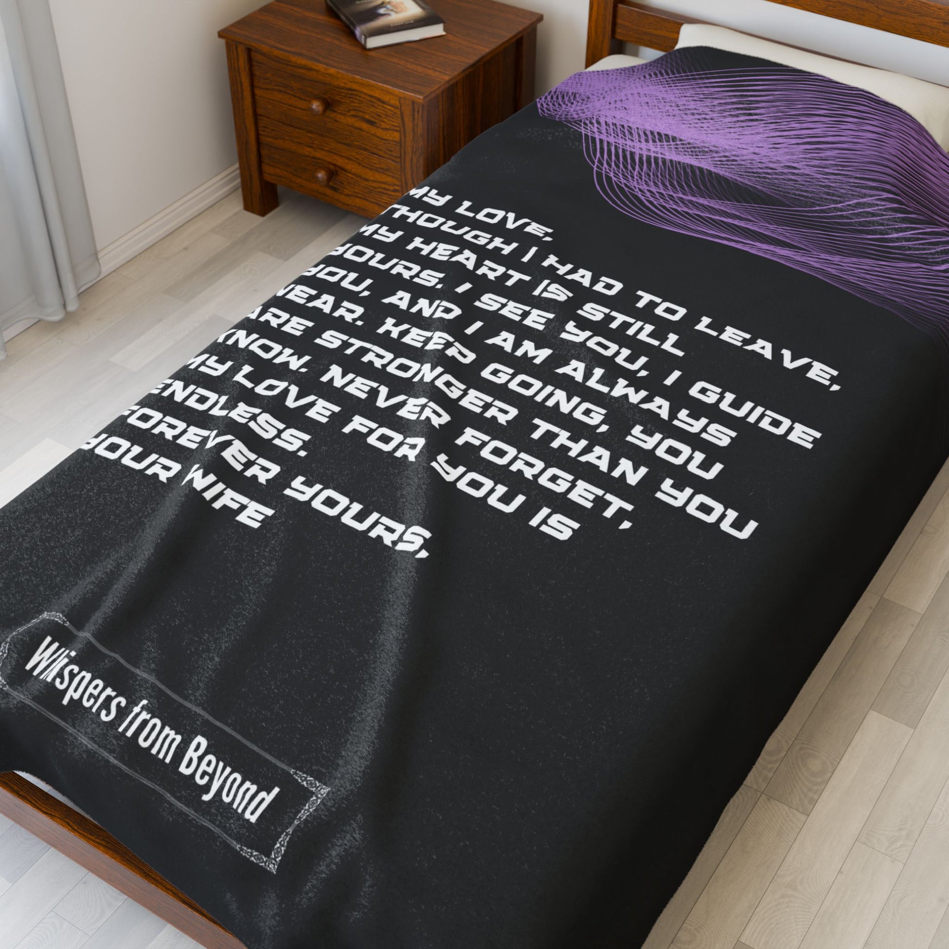 Even though she can’t be there to hold his hand, her love remains unshaken and timeless. This blanket is a heartfelt message from a wife, reminding her husband that her love is always with him—guiding, supporting, and never fading