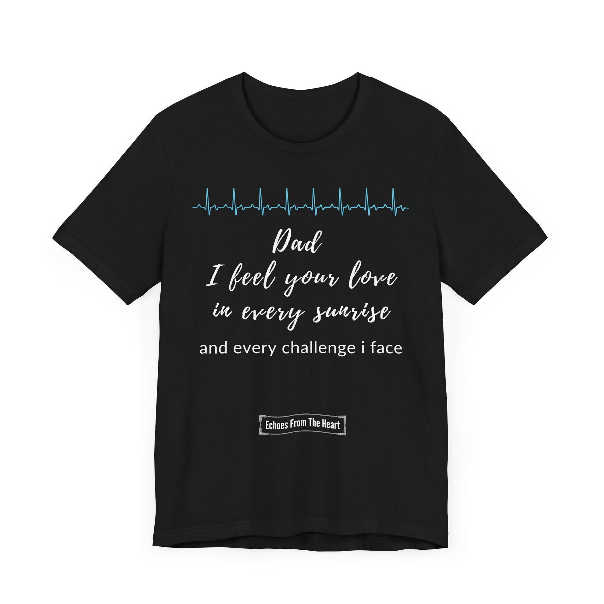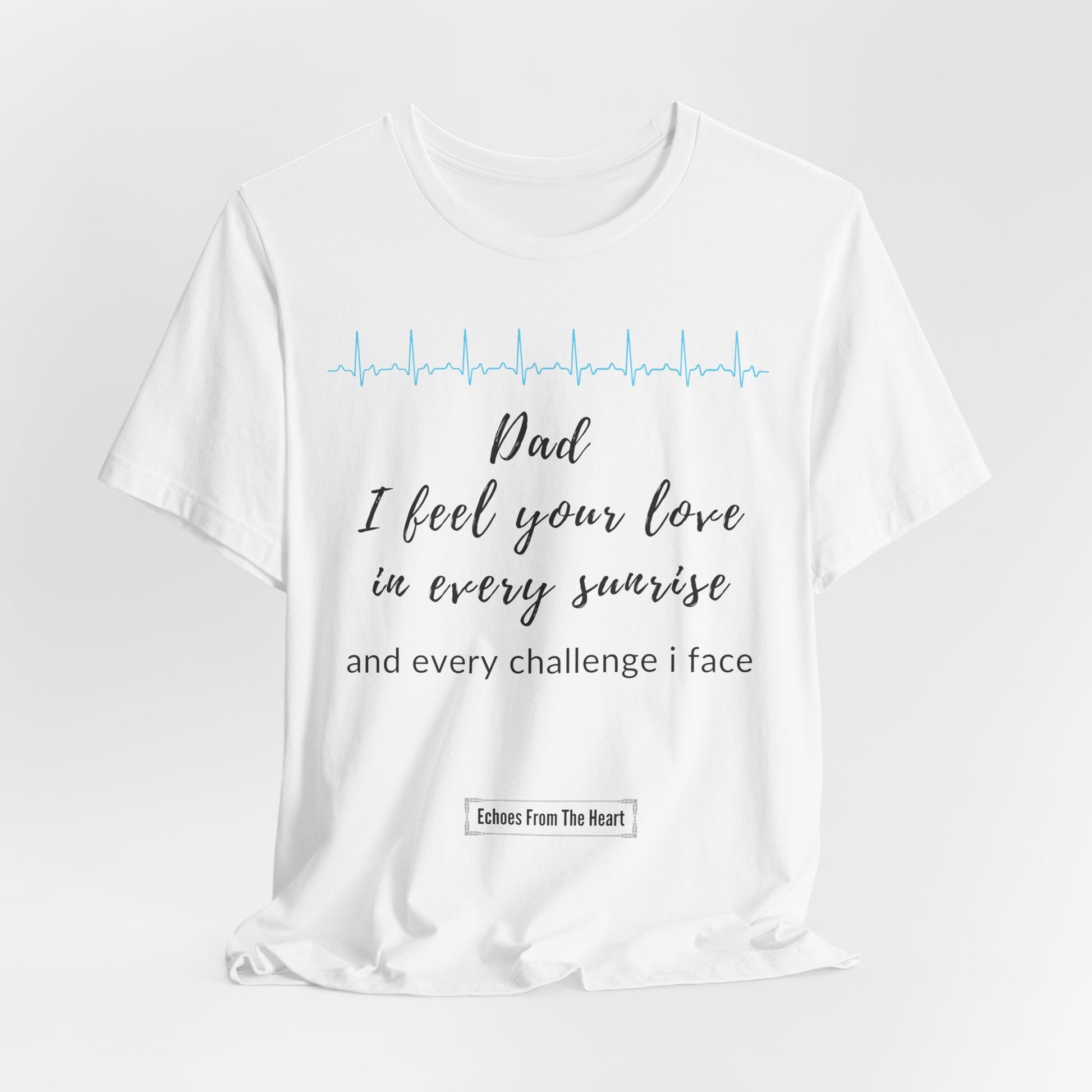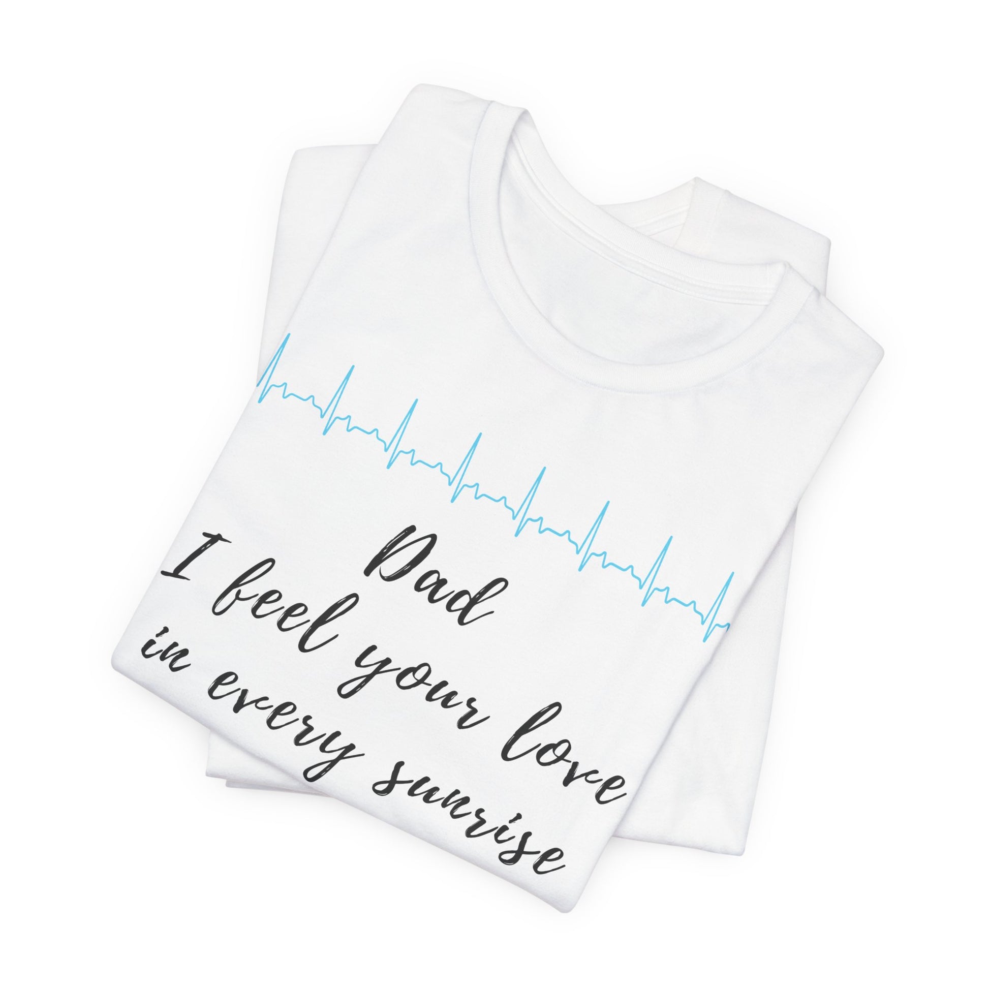 This compassionate shirt serves as a heartfelt reminder for a grieving child to recognize that their father is always with them. It honors the deep bond between a child and their dad.