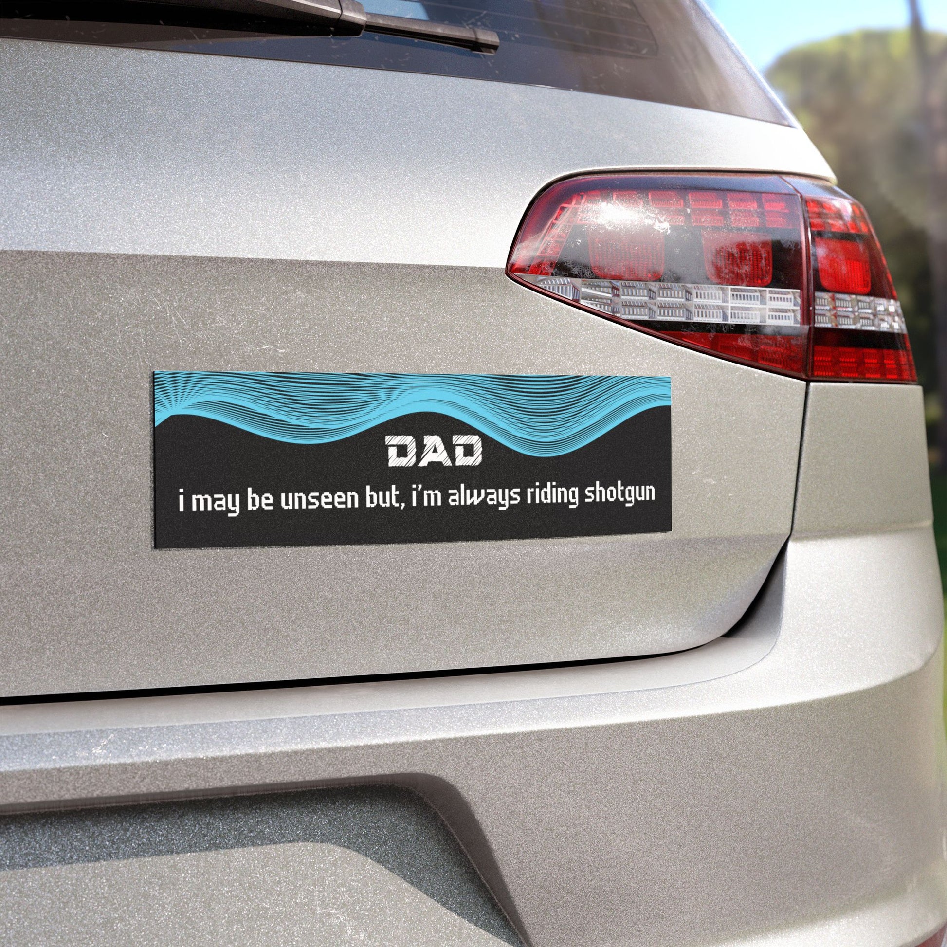 "A loving message from your child in spirit, this bumper magnet reminds you that even though they may be unseen, they are always with you. 'Dad, I may be unseen, but I’m always riding shotgun' offers reassurance that your child’s love and guidance remain by your side, providing comfort and connection from beyond. A perfect keepsake for fathers who want to feel their child's ongoing presence and support."