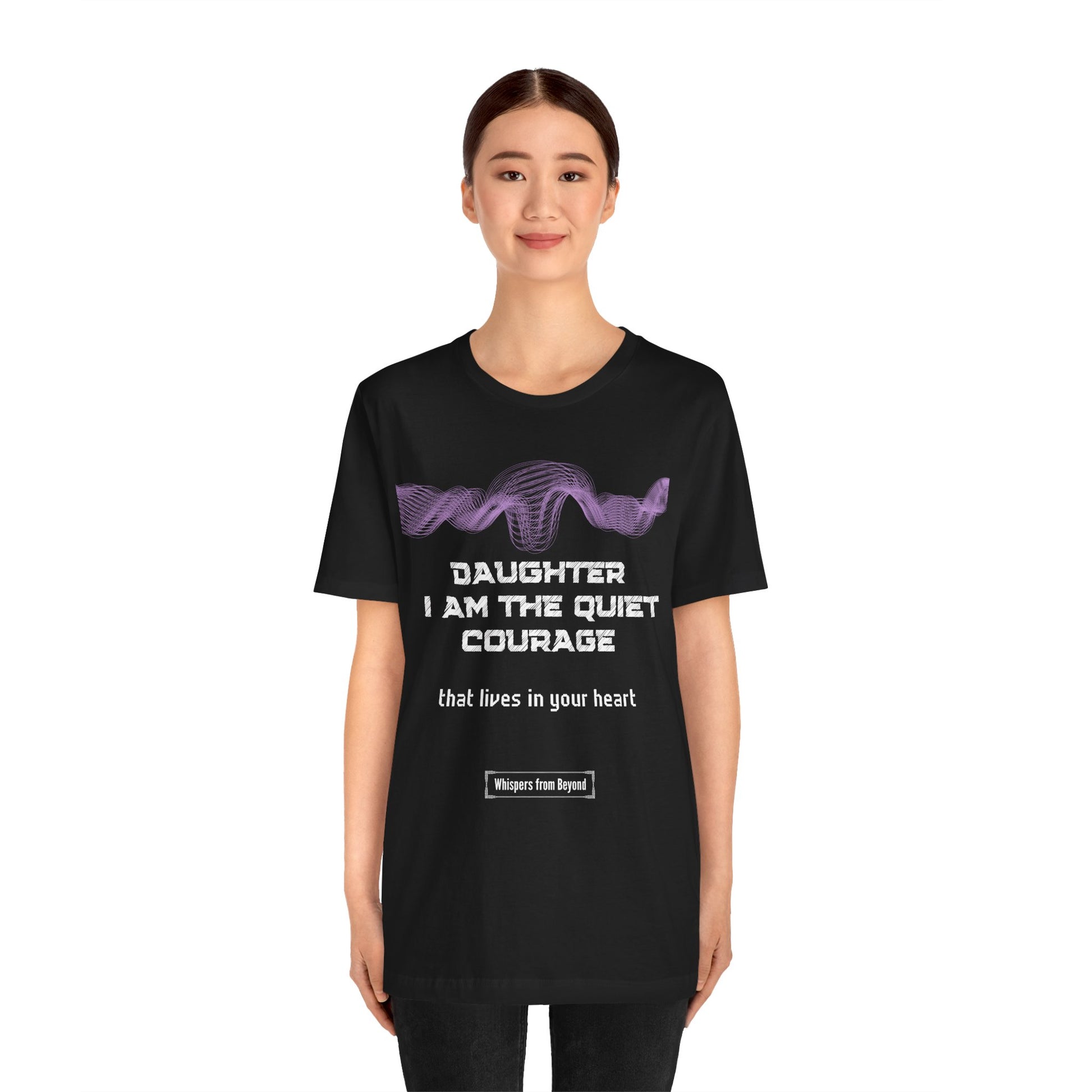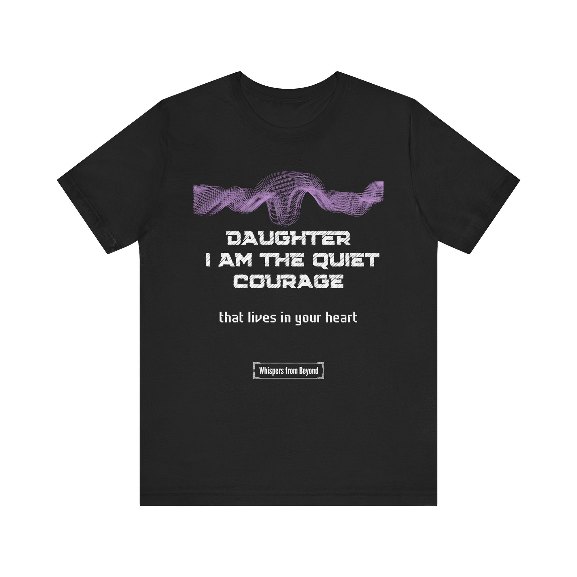 This gentle yet powerful message from a parent in spirit to their daughter conveys a deep sense of inner strength. It reassures her that, even from beyond, their courage continues to reside within her, helping her face challenges with grace.