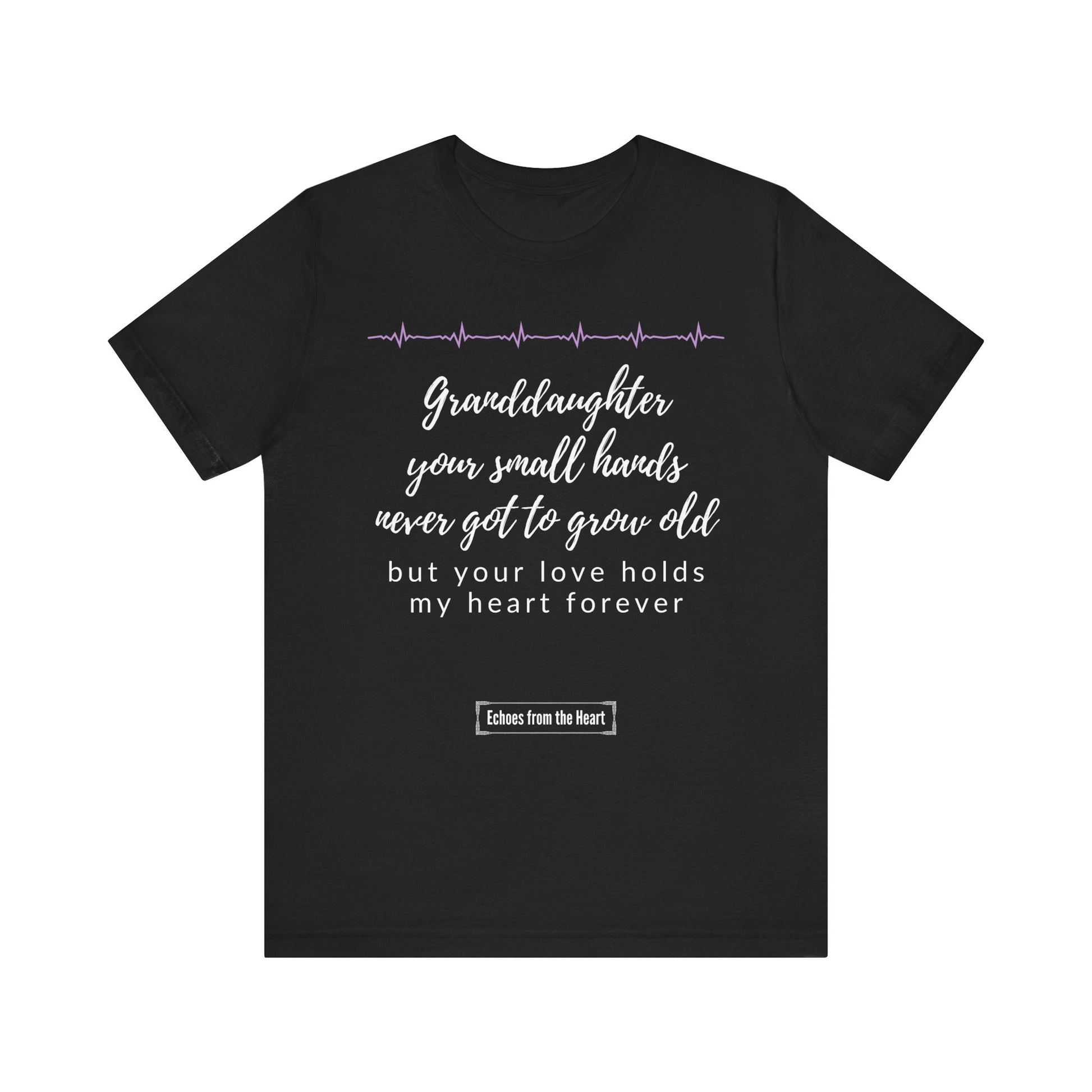 A heartfelt memorial shirt for a grieving grandparent, honoring the memory of a precious granddaughter gone too soon. Featuring a tender message about her love that will forever hold your heart, this shirt offers comfort and remembrance every time it’s worn.