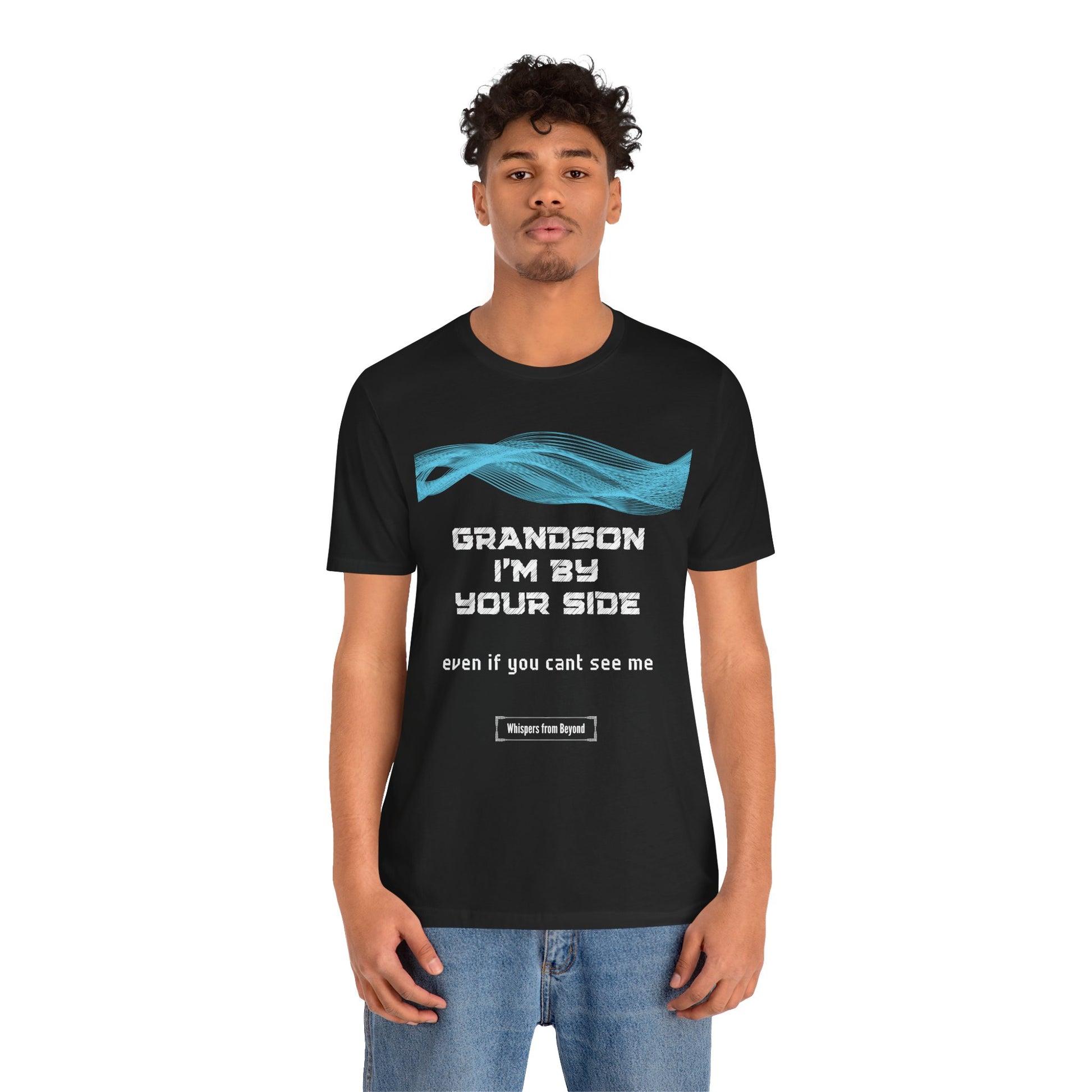 A comforting whisper from a grandparent to their grandson, reminding him that their presence remains close and steadfast, even when unseen. A heartfelt memorial shirt for ongoing love and remembrance. This touching message from the “Whispers” collection assures your grandson that love transcends the physical world. Even when not physically present, his grandparent's presence remains constant in spirit, offering strength and comfort whenever he needs it. A meaningful reminder of the eternal bond you share, no matter the distance.