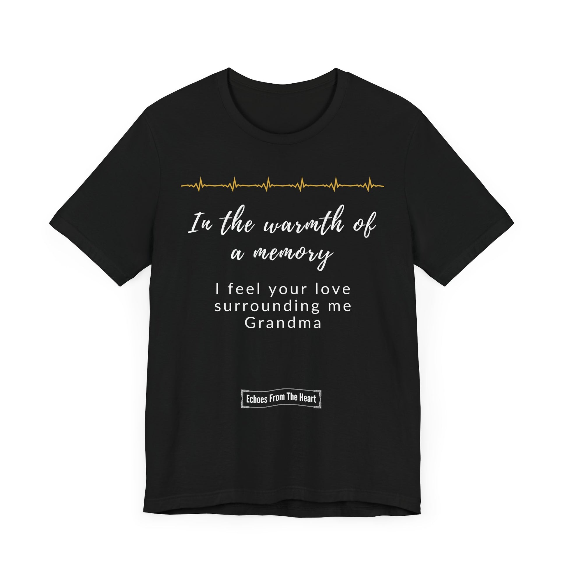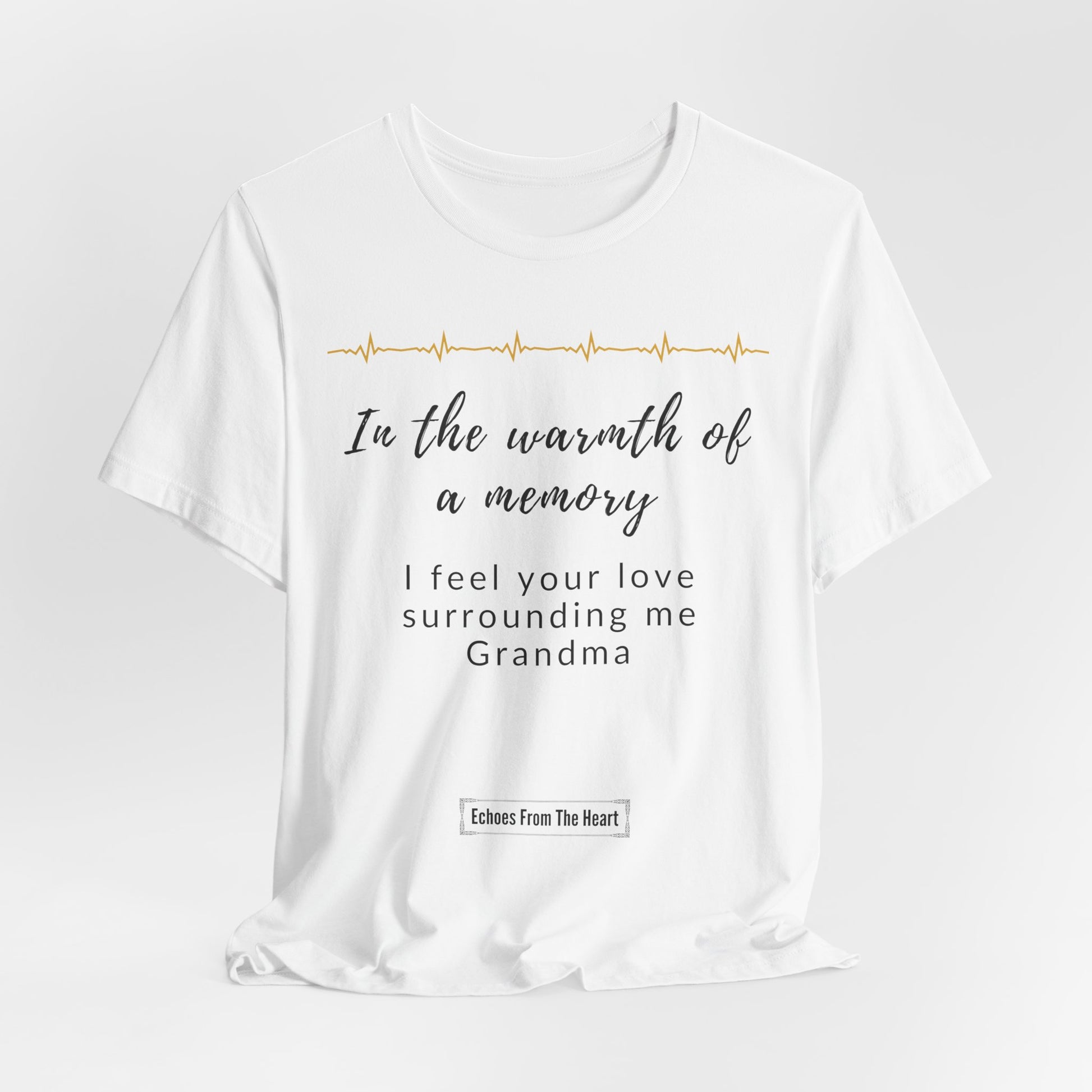 This heartfelt shirt honors the comforting love of a grandmother. It captures the essence of how her love continues to embrace you through cherished memories, offering warmth and peace in moments of reflection.