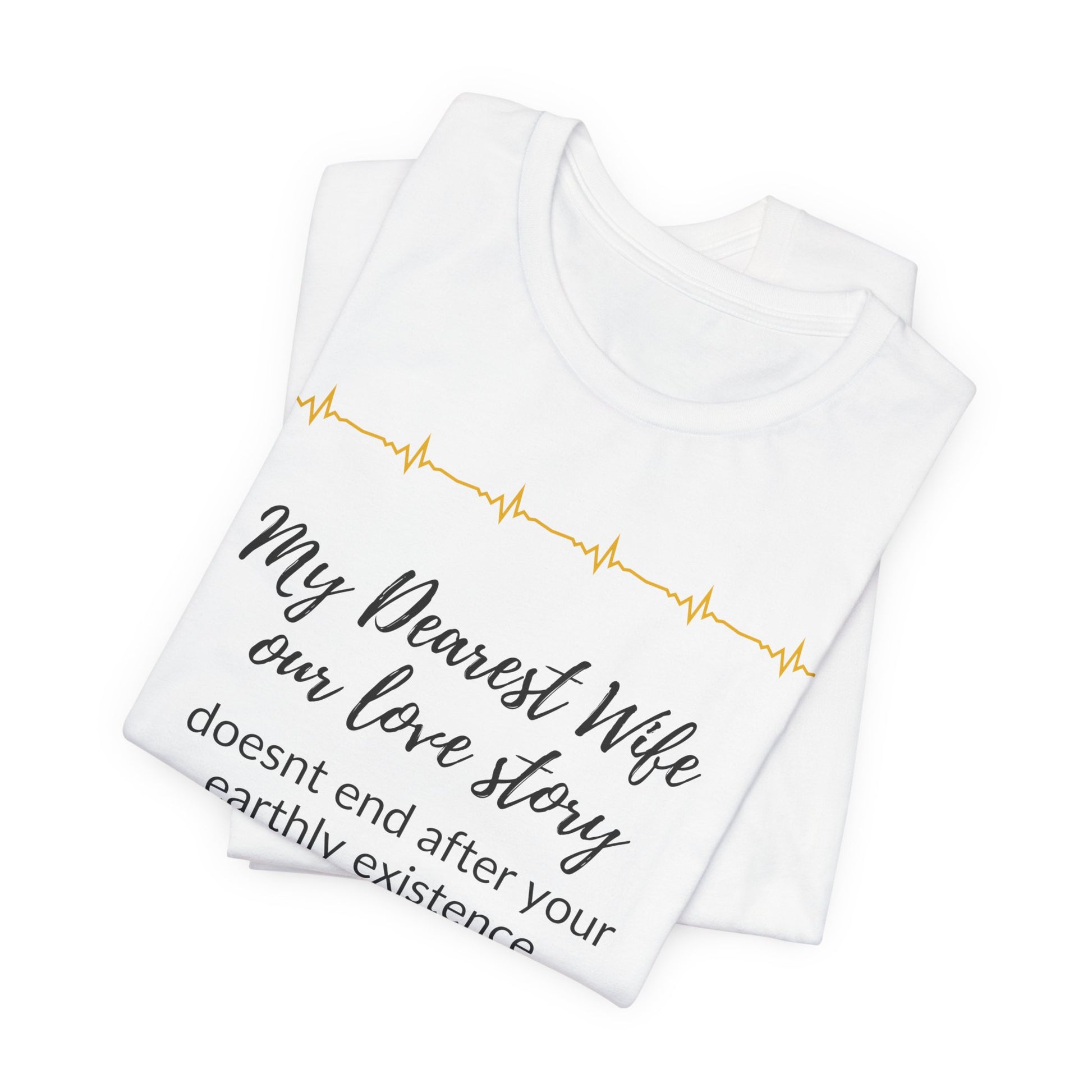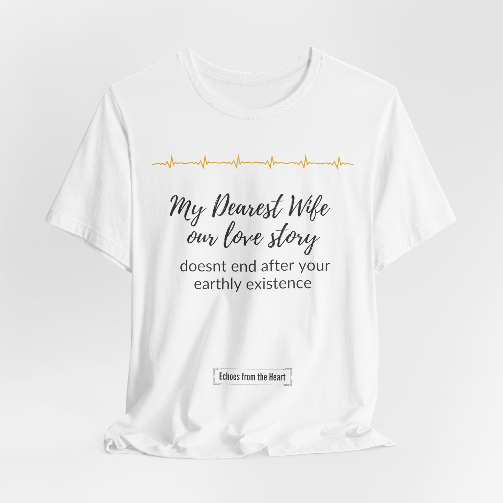 This deeply sentimental shirt honors the everlasting bond between spouses, emphasizing that love transcends physical life. It serves as a reminder that your love story continues, far beyond earthly existence, forever imprinted in your heart.