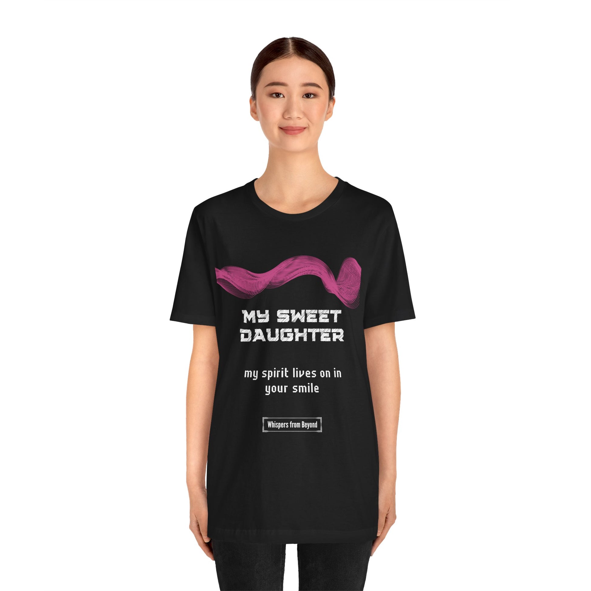 This loving message from a parent in spirit to their daughter speaks of the enduring connection between them. It assures her that their spirit remains present in every joyful moment, bringing comfort and a reminder of their everlasting love.