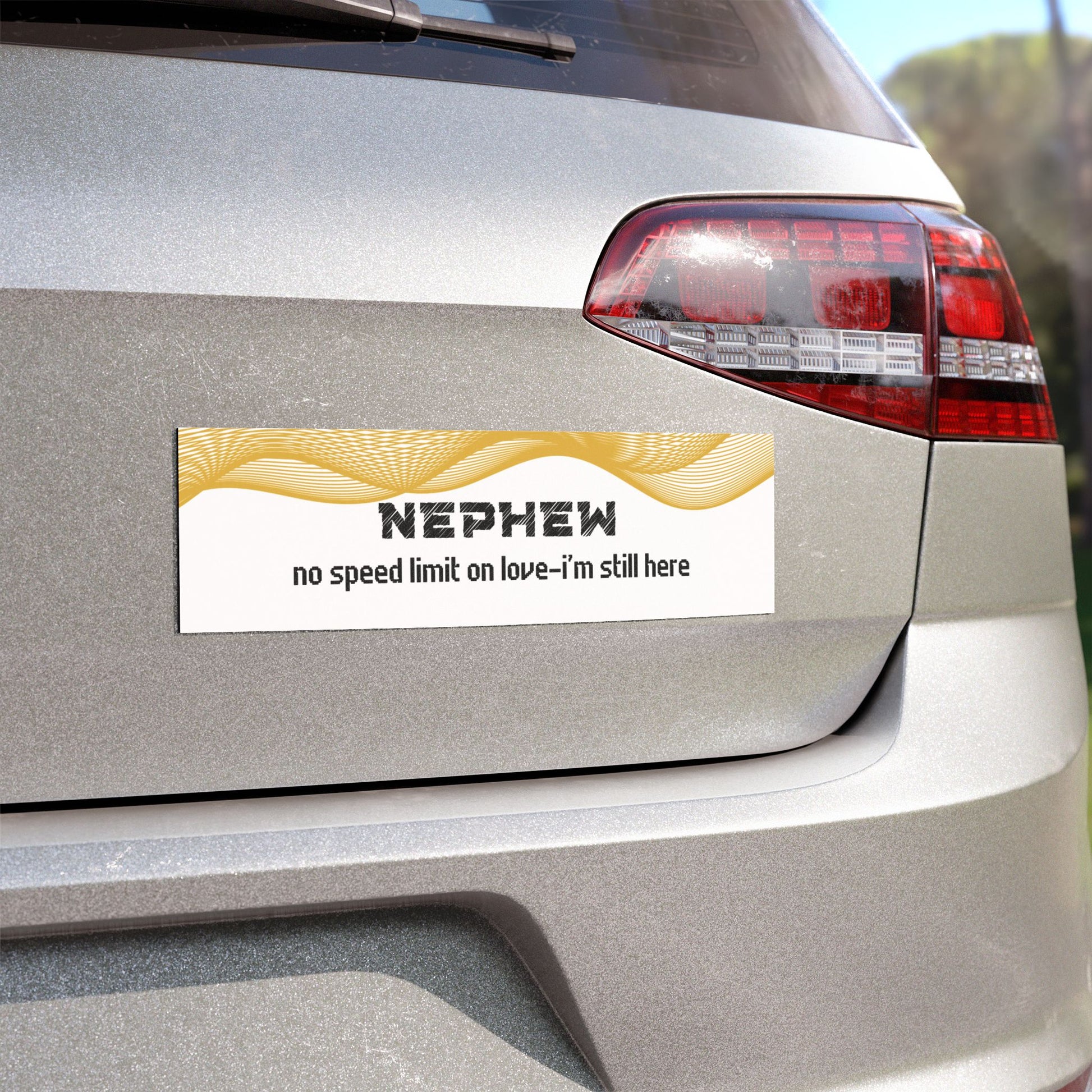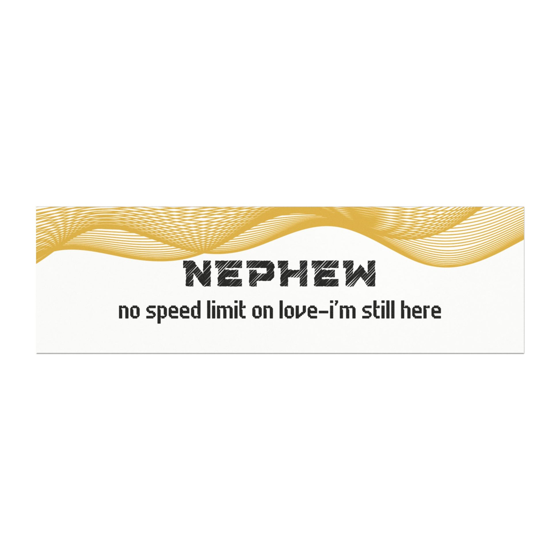 "A heartfelt message from your aunt or uncle in spirit, this bumper magnet serves as a reminder that love knows no boundaries. 'Nephew, no speed limit on love… I’m still here' reassures you that, even though they are no longer physically with you, their love is eternal and always present. A perfect keepsake for nephews who want to feel the lasting love and connection of their aunt or uncle."