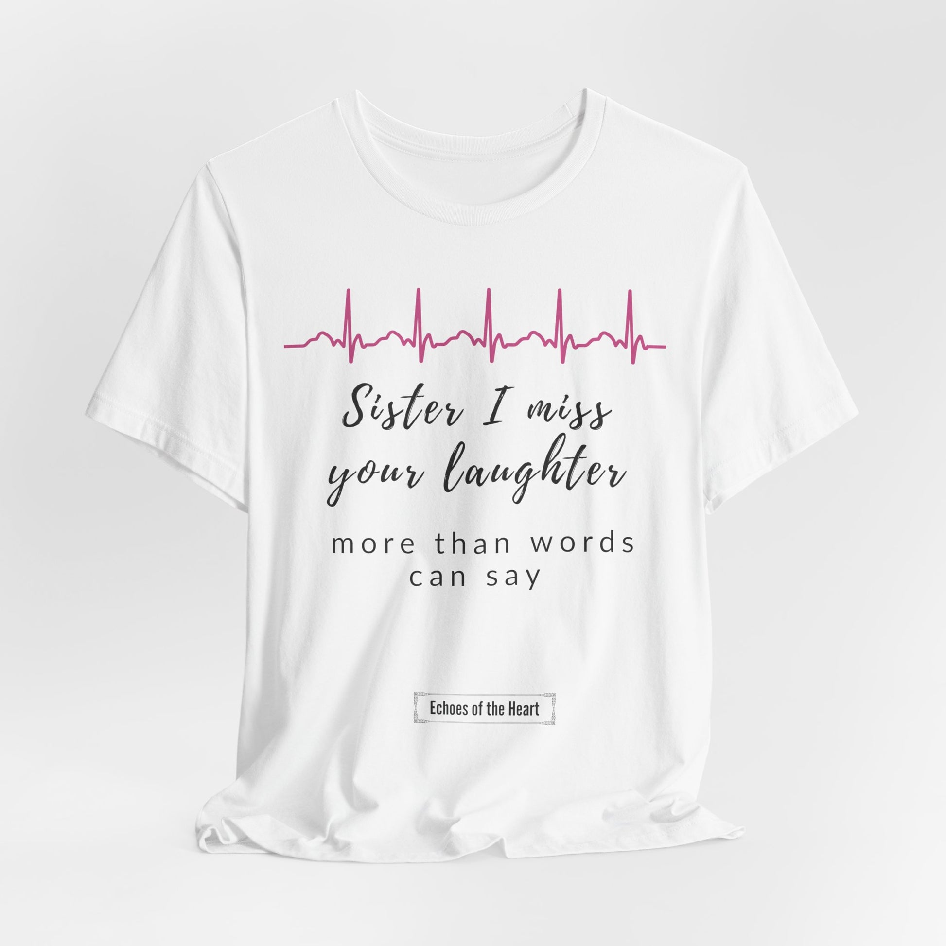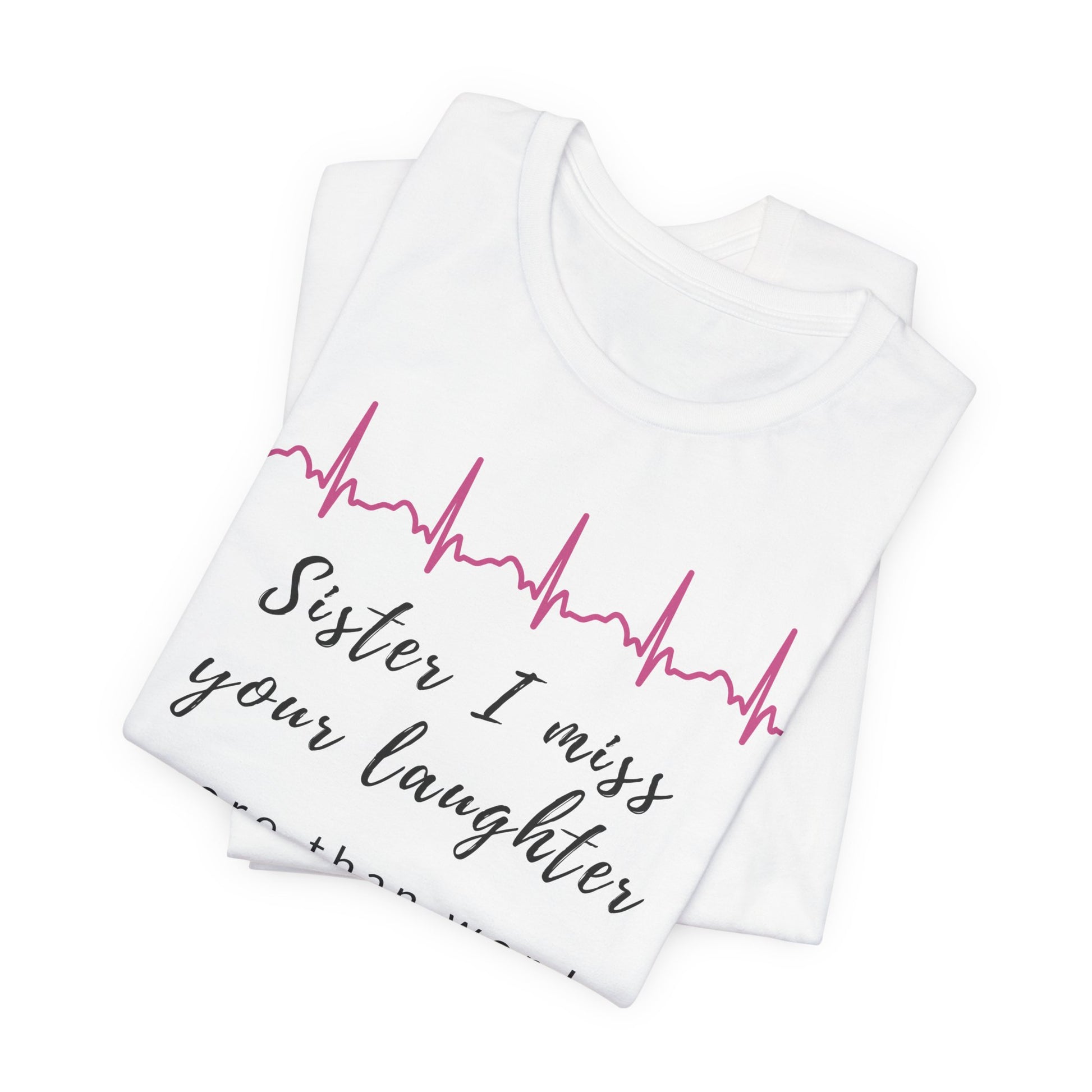 This amazing shirt honors the unique bond shared with a sister, specifically the joy and laughter she brought into your life. It serves as a reminder that her laughter is deeply missed, leaving a space that words cannot fill, but her memory remains forever cherished