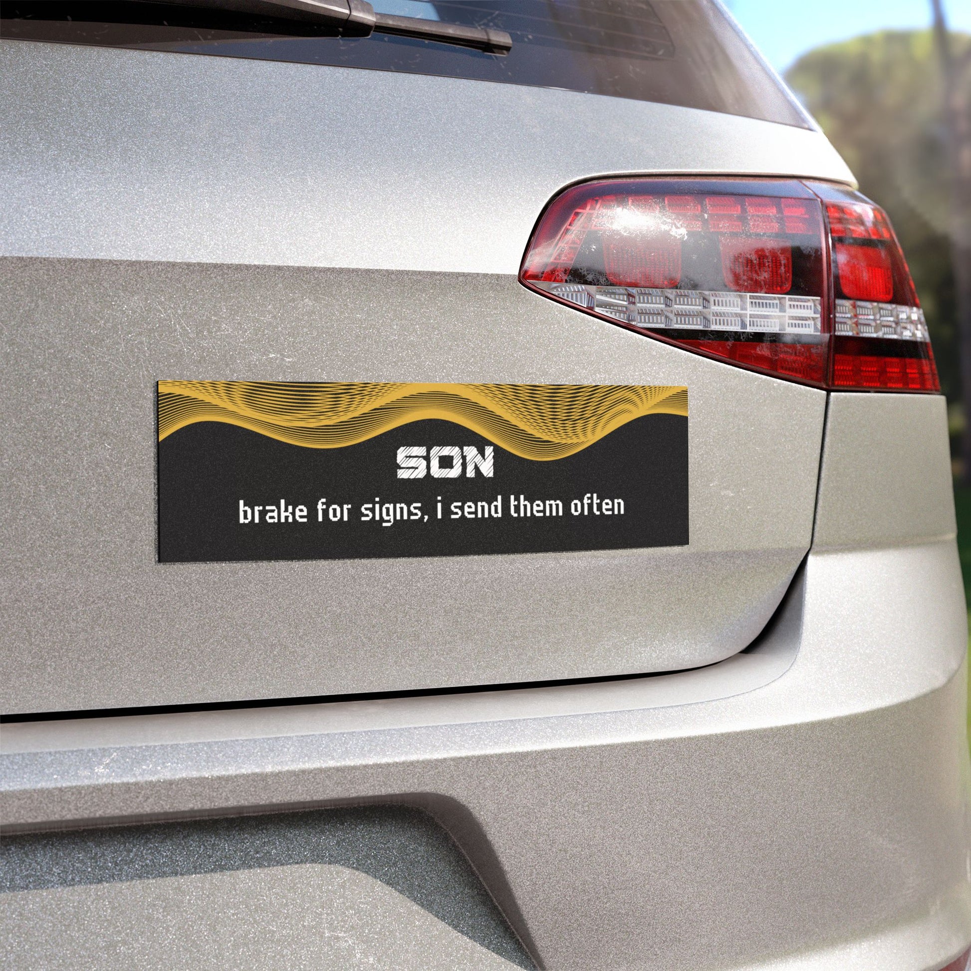 "A loving message from your parent in spirit, this bumper magnet encourages you to stay open to the signs they are sending from beyond. 'Son, brake for signs… I send them often' reassures you that love and guidance are always with you, offering comfort and connection from the other side. A perfect keepsake for sons who want to feel their parents' ongoing presence and support."