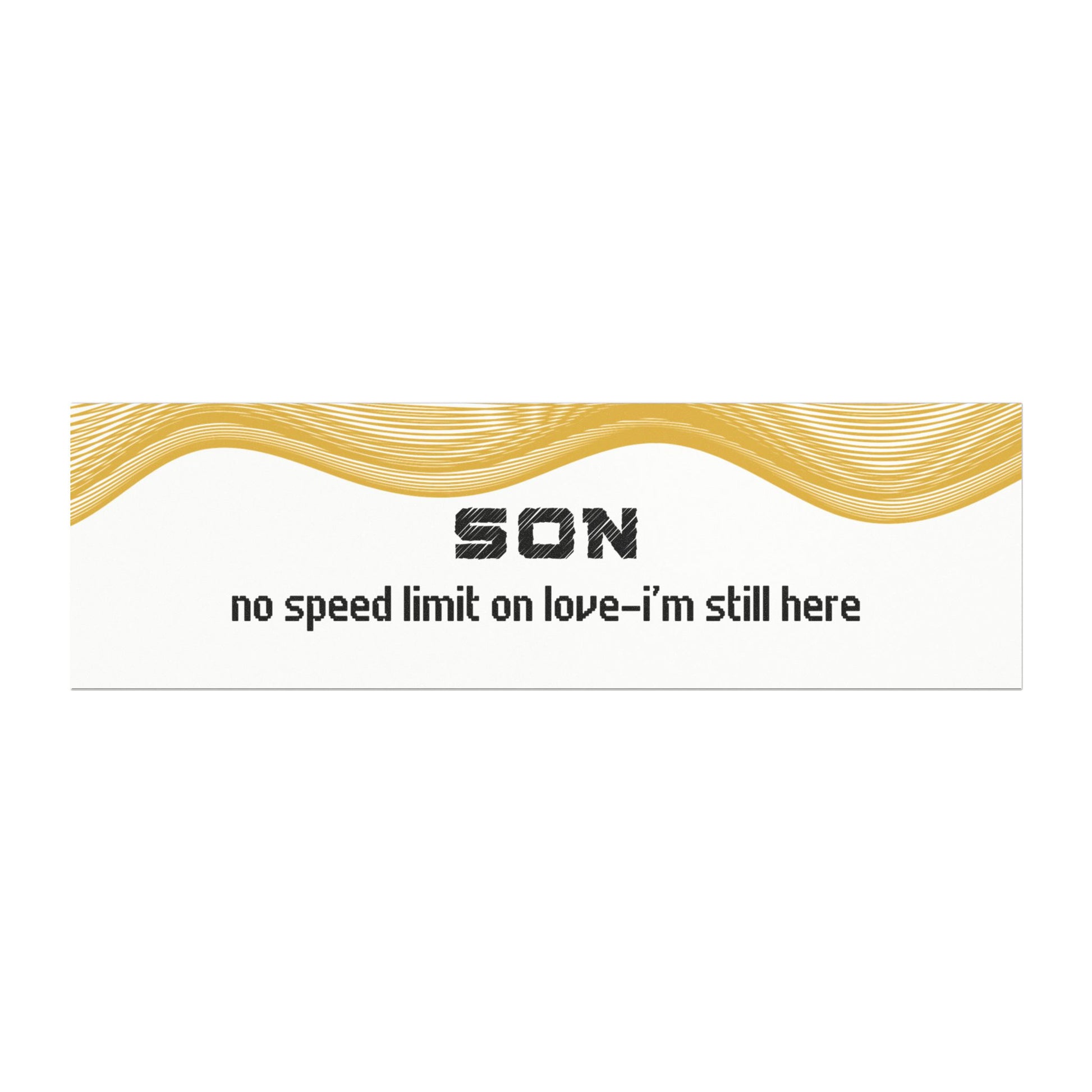 "A loving message from your parents in spirit, this bumper magnet reminds you that love has no boundaries. 'Son, no speed limit on love… I’m still here' reassures you that, even though your parents are no longer physically with you, their love is limitless and always surrounds you. A perfect keepsake for sons who want to feel the constant presence and love of their parents, no matter the distance."