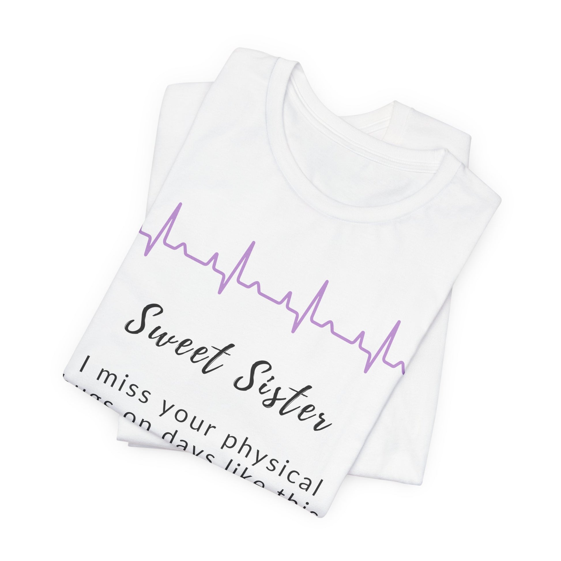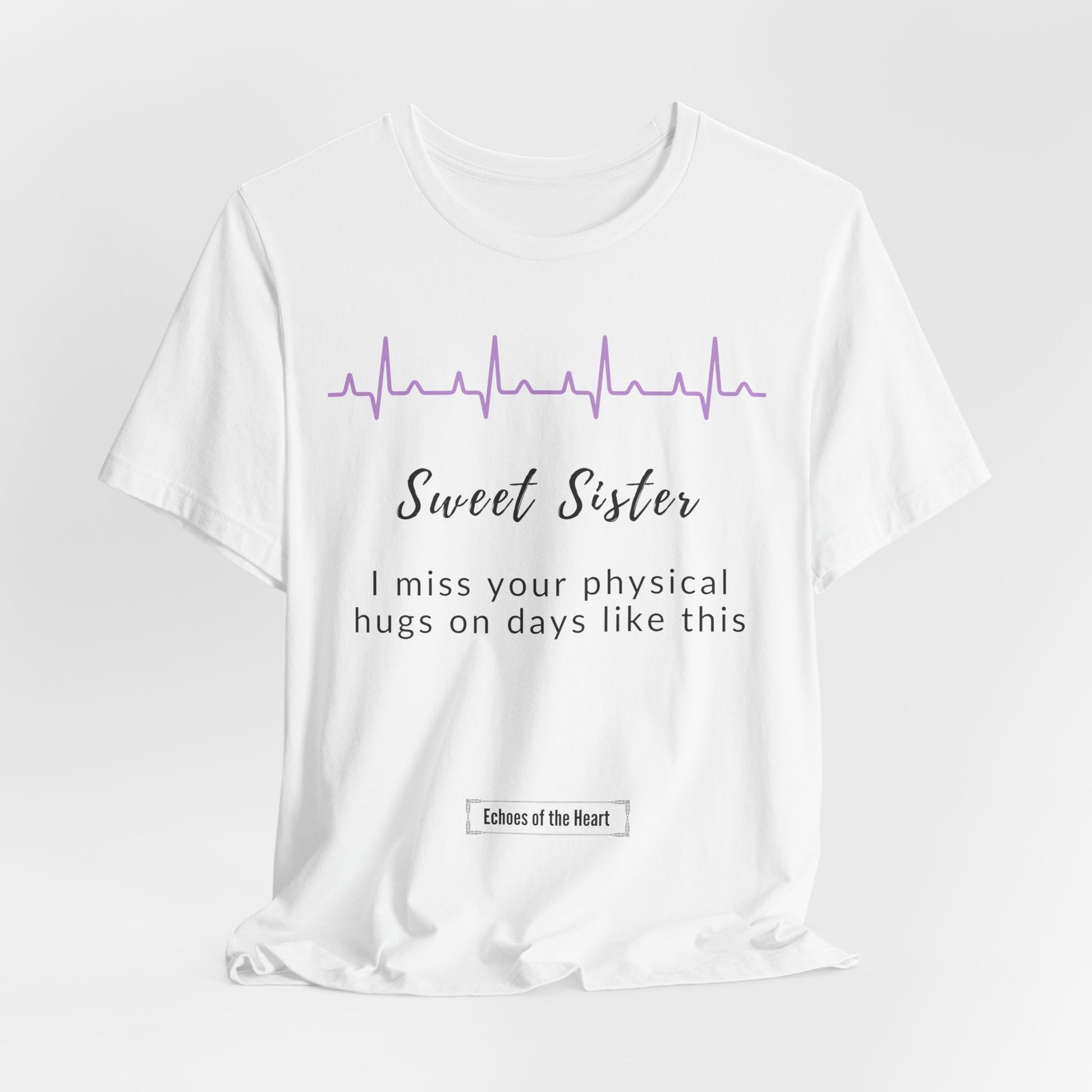 This emotional shirt honors the comfort and love a sister’s physical presence brought. It serves as a reminder that, though her hugs are missed, the love and warmth she gave continue to live in your heart, offering support on difficult days.