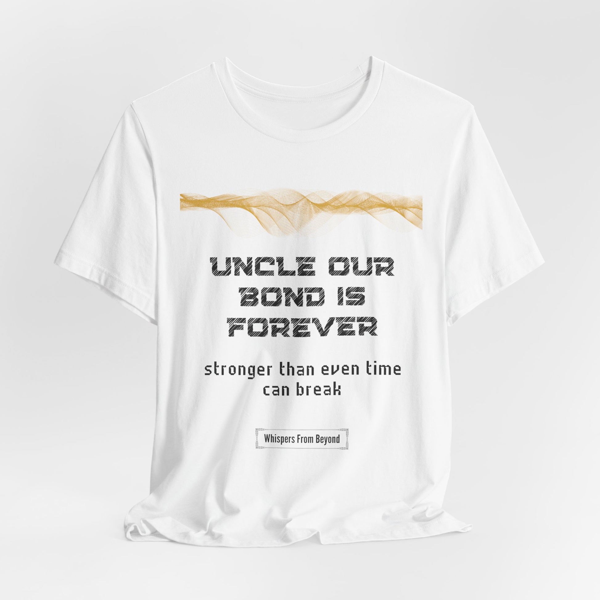 A heartfelt whisper from a niece or nephew in spirit to their uncle, affirming that their unbreakable bond transcends time and distance. A comforting memorial shirt honoring everlasting love and connection. This powerful message from a soul to their uncle affirms that their bond is unbreakable, transcending time and space. No matter what happens, the love and connection they share will remain forever strong, providing comfort and peace. This design beautifully captures the eternal connection between uncle and niece or nephew, reminding them that love endures beyond the physical realm and will never fade.