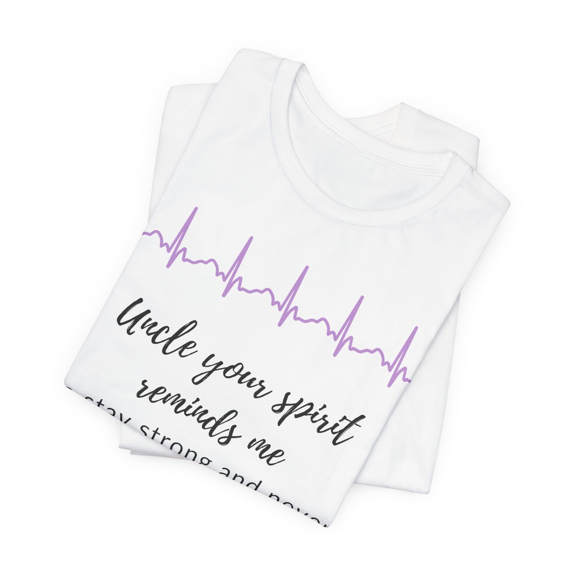 This inspiring shirt honors an uncle’s unwavering strength and encouragement. It serves as a reminder that his spirit continues to motivate you, reminding you to remain strong and resilient in the face of life’s challenges.